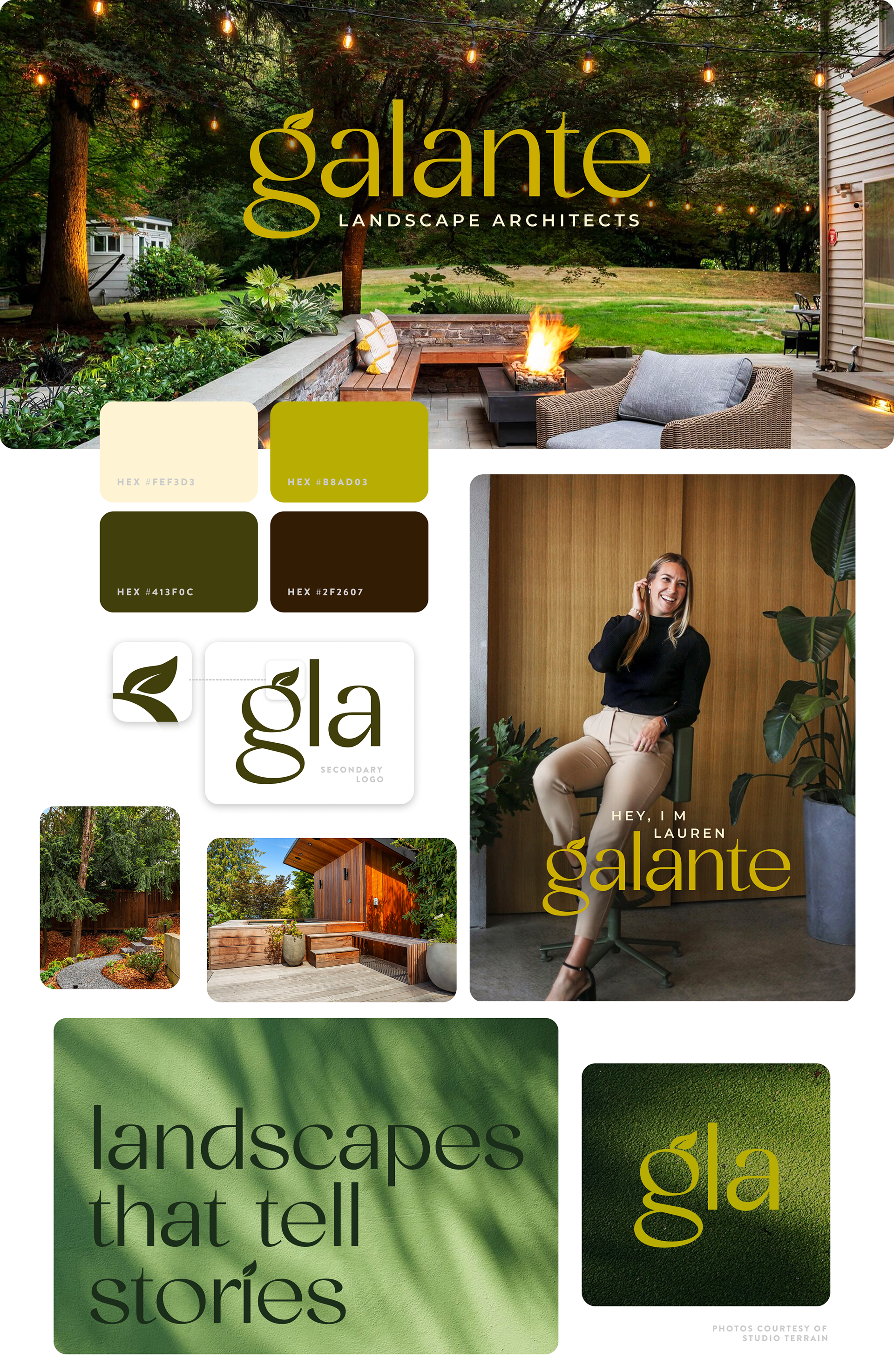 Designed the logo and brand identity for Galante Landscape Architects, bringing founder Lauren’s vision to life as she established her own practice. The brand was designed to be both feminine and strong, playful yet refined, mirroring the beauty and artistry of her work.